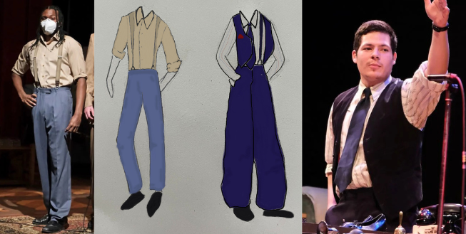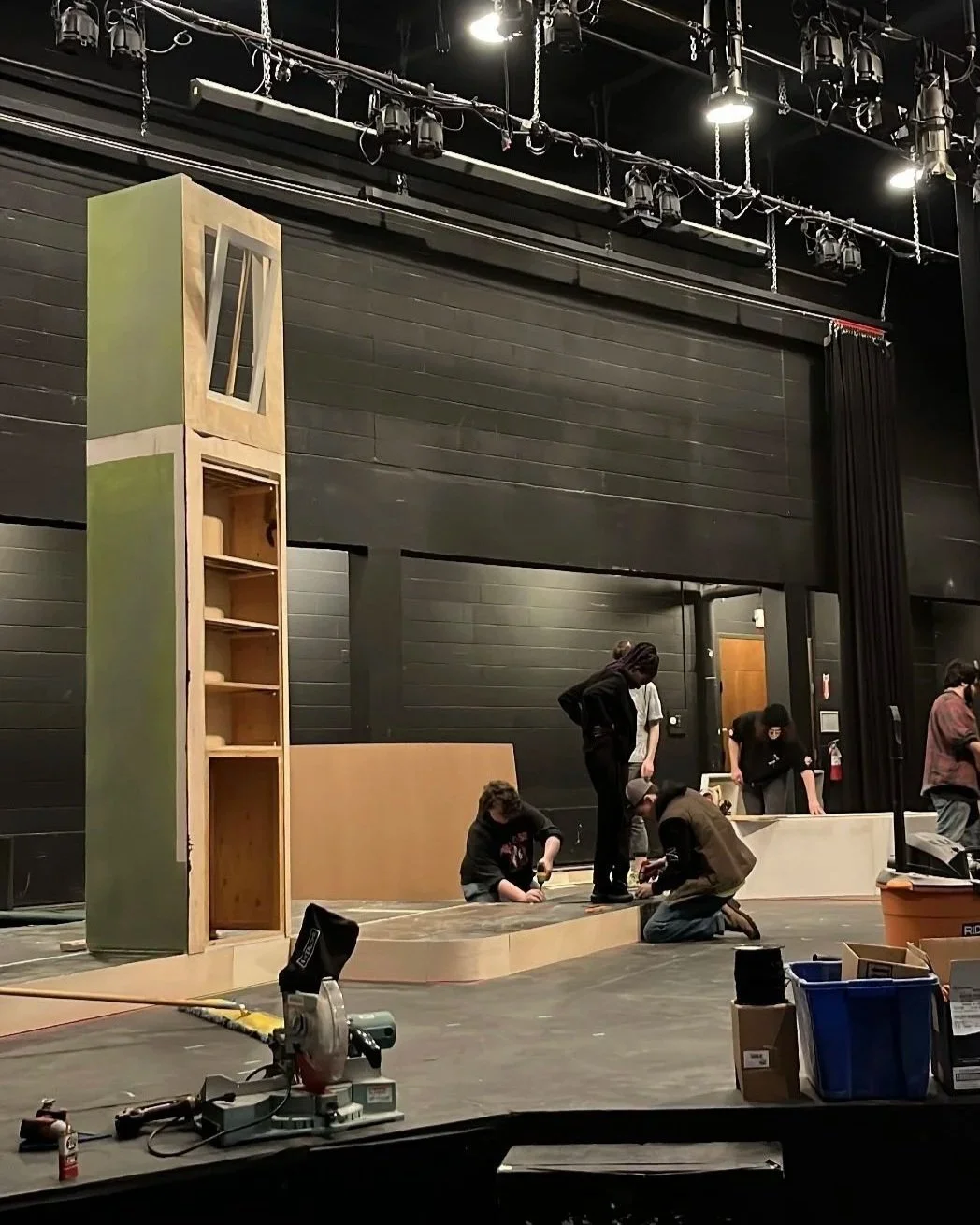 Collaborating with stage manager for costume design, research for period accurate clothing. Assistance in props management and set construction, including carpentry, painting, and assembly.
